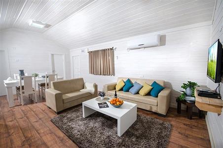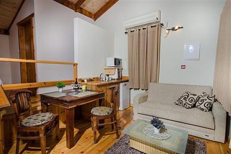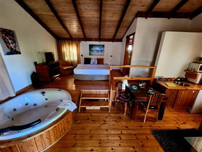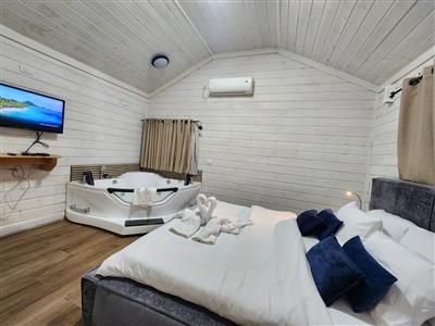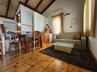 העיצוב בסגנון כפרי חמים עם עץ טבעי ואווירה שלווה, ומציע אמבט ספא זוגי מפנק 🛁 לצד המיטה, מיטה זוגית רחבה ונוחה, ספה נפתחת לאירוח נוסף, פינת ישיבה נעימה, מטבחון מאובזר, ומיזוג אוויר.