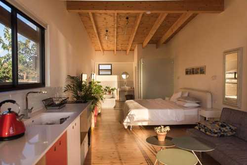 החלל מאובזר במיטה זוגית אורתופדית וסלון הסוויטה מאובזר בספה הנפתחת למיטה נוספת. גודל הסוויטה כ-45 מ"ר.