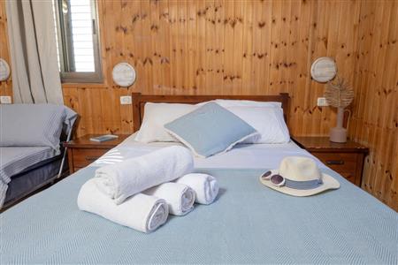 חופשה קצת יותר מרווחת — שני חדרים לעד ארבעה אורחים, אידאלי למשפחה שמחפשת פרטיות ונוחות, יחד עם אפשרות לחלוקת שינה טובה ונוחות מקסימלית. קרוב מאוד לחוף, ירוק סביבתי וסביבת קטבוץ רגועה.