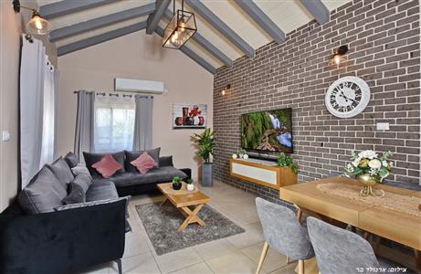 הסלון מציע פינת ישיבה נוחה, שטיח נעים, טלוויזיה גדולה, ומטבח מאובזר היטב. לצידו פינת אוכל שמתאימה ל6 סועדים עם אופציית פתיחה לעד 12 סועדים.