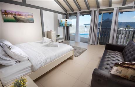 שלושת חדרי השינה הזוגיים מרווחים, אחד מהחדרים הוא חדר שינה מאסטר גדול ומרווח עם חדר רחצה צמוד וספה נפתחת. יש לו חזית מזכוכית הנפתחת אל מרפסת דק שמשקיפה אל הבריכה. עוד יש בו ארון בגדים, טלוויזיה גדולה, ומיטה זוגית. בשני החדרים הנוספים יש מיטה זוגית, טלוויזיה, מזגן וקומודה (מעין שידת מגרות מיוחדת) עם מראה, הטלוויזיות בכל החדרים חכמות ועם חיבור ל-YES.
