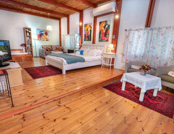 בקתה מרשימה, מעוצבת ומבודדת. הבקתה מיועדת לזוגות ומאפשרת לשלב שני ילדים. עץ כפרי מוברש בלבן, מתהדר בשטיחים חמים ובתמונות שמן עליזות.