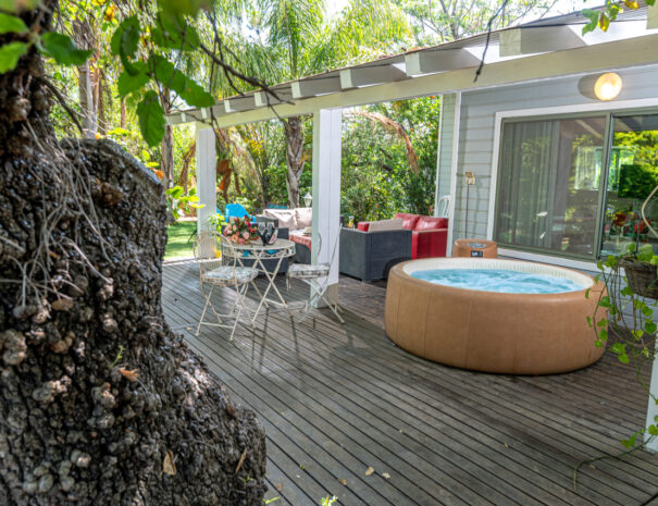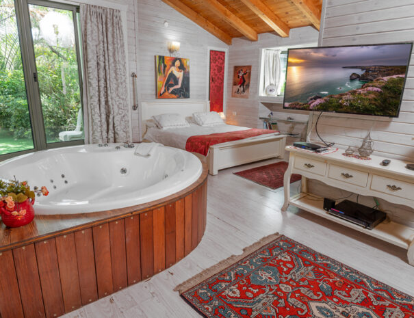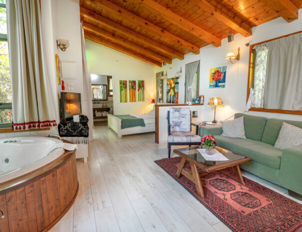 צעידה בשביל פנימי בתוך פרדס ריחני אט אט מובילה לעבר בקתה קסומה ומבודדת. הבקתה מציעה ג'קוזי פנימי לצד הוט טאב חיצוני