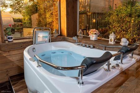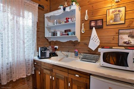 הג׳קוזי והאח הם המאפיינים המיוחדים של בקתה זו. הבקתה ממוזגת ויש בה כניסה פרטית, מטבחון, חדר שינה אחד וחדר רחצה אחד עם תא מקלחת ואמבטיה. המטבחון מאובזר היטב וכולל מקרר, כלי מטבח, מיקרוגל ואמצעים להכנת תה וקפה. הבקתה כוללת גם מתקני ברביקיו. בבקתה יש מיני בר, טלוויזיה בכבלים עם מסך שטוח, נוף לגן, ויין/שמפניה. ביחידת האירוח יש שתי מיטות.