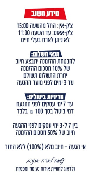 * תפוסה: עד 6 נפשות