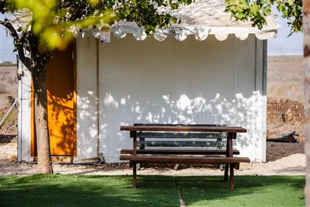 צמוד לאוהל ספסל פיקניק ופינת מנגל