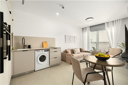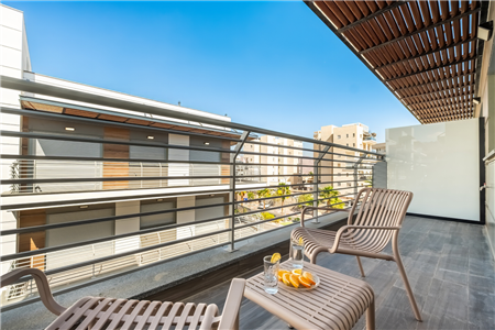 סוויטה בת חדר שינה אחד וסלון בו ספה נפתחת למיטה זוגית נוספת ,