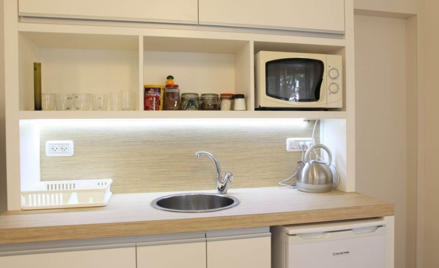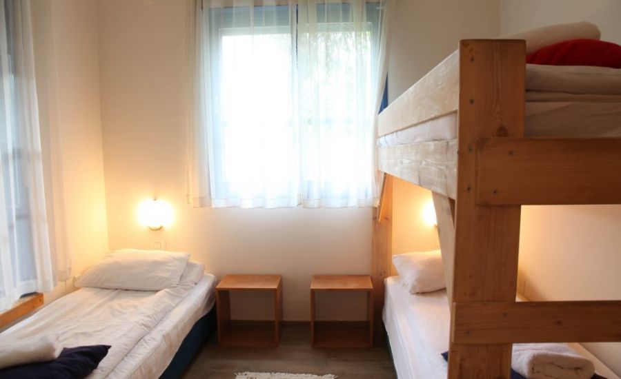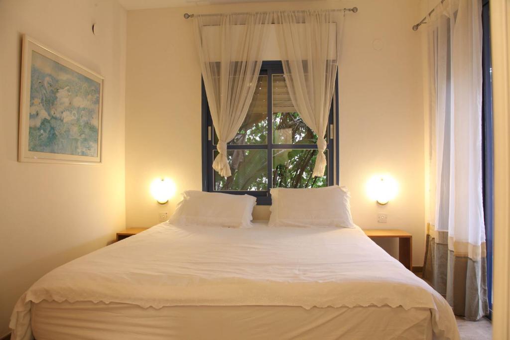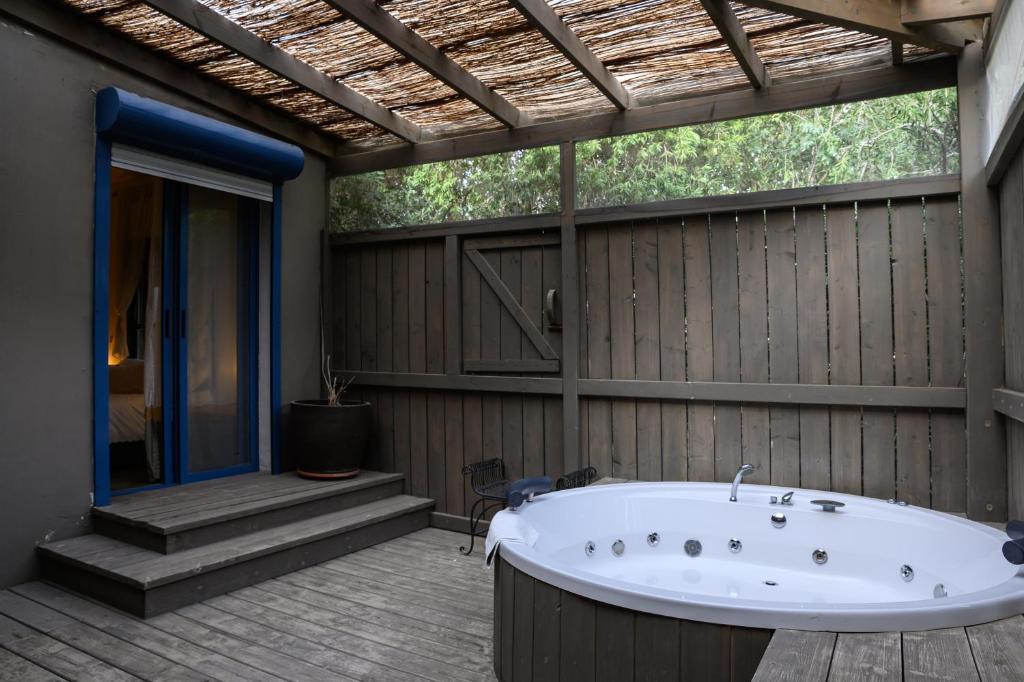 בחצר המתחם נמצאות שתי יחידות אירוח המותאמות למשפחות של זוג + עד שלושה ילדים. בכל יחידה שני חדרי שינה עם שירותים ואמבטיה צמודים. מחדר ההורים ישנה יציאה למרפסת מקורה ובה ג'קוזי גדול ופינת ישיבה. את חדרי השינה מחבר הול כניסה מואר בחלונות כחולים, בו ממוקם מטבחון, פינת אוכל ופינת ישיבה עם טלוויזיה מחוברת לשלל ערוצי YES.