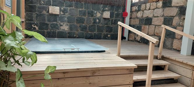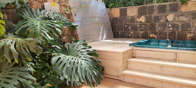 גינה פרטית עם ג'קוזי ענק.