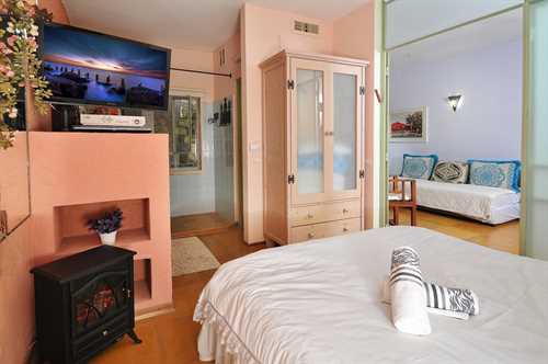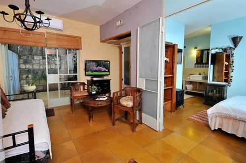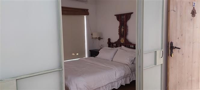 יחידת אירוח מרווחת בגודל כ־50 מ"ר עם חדר שינה זוגי, סלון עם ספה נפתחת, אמבטיה ושירותים.
